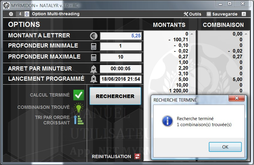 ʕ•̫͡•ʔ♬✧ Nouvelle version de mon application MYRMIDON+ NATALYR, de recherche de combinaison pour lettrage, d'une valeur cible à partir d'une liste de montants.